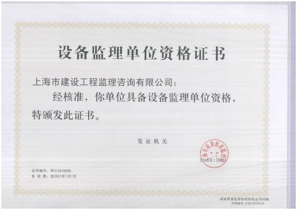 | 持证单位: 上海市建设工程监理咨询有限公司 |